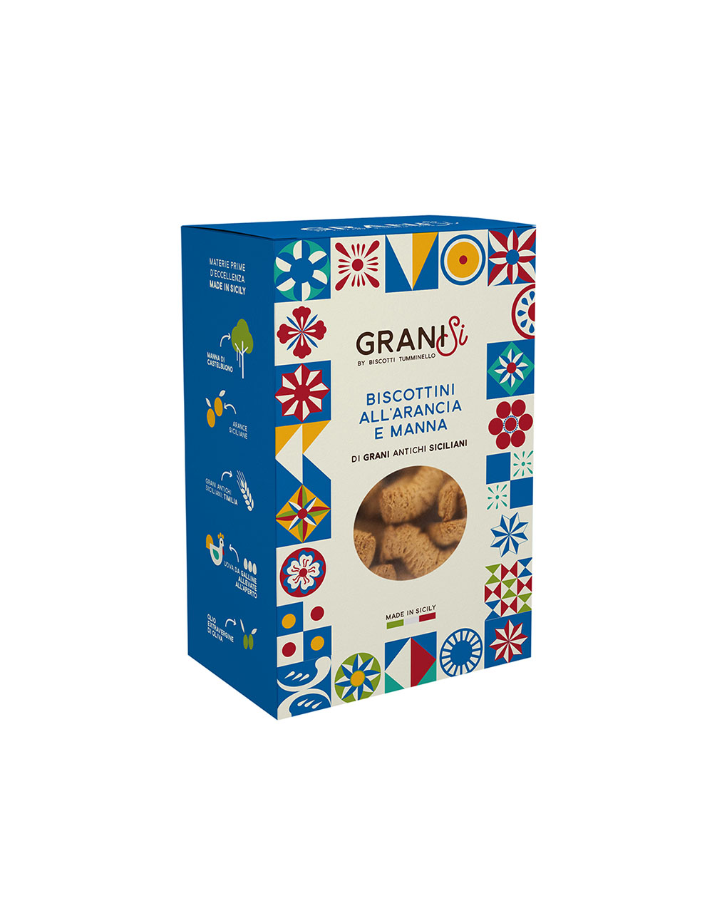 Prodotto artigianale da forno: Biscottini alla manna e arance e grani antichi siciliani.