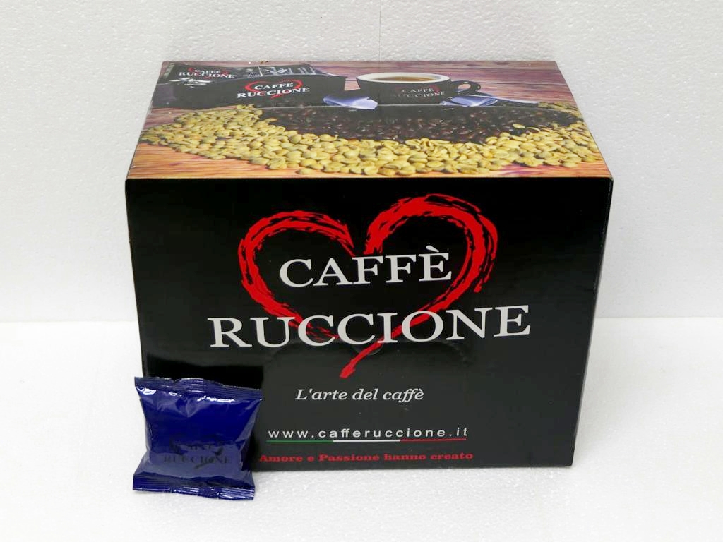 Caffè Ruccione, 100 Cialde Blu Miscela Densa Corposa retrogusto Cioccolato, miscele di caffè pregiate selezionate, torrefatto artigianalmente con cura e confezionati senza procedimenti industriali.