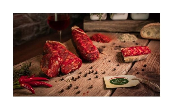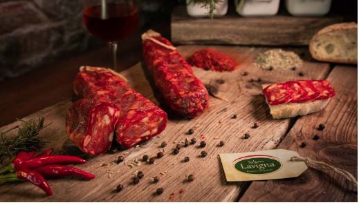 Vi si aggiungono le spezie caratteristiche calabresi. Il tutto viene insaccato e messo a stagionare per più di 45 giorni a temperatura e umidità costante. A metà stagionatura l’insaccato viene pressato per essere appiattito e da qui prende il nome di soppressata o schiacciata ottenendo la forma caratteristica che tutti conosciamo.